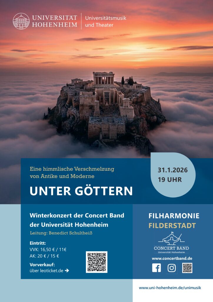Von der antiken Welt des Wettkampfs und des Ruhms über die vielfältige griechische Sagenwelt bis hin zu angeheiterten, römischen Göttern zu Besuch in Nordamerika: „Unter Göttern“ lautet das Programm des Abends und umfasst mitreißende Originalkompositionen sowie verschiedene Arrangements zum Motto.